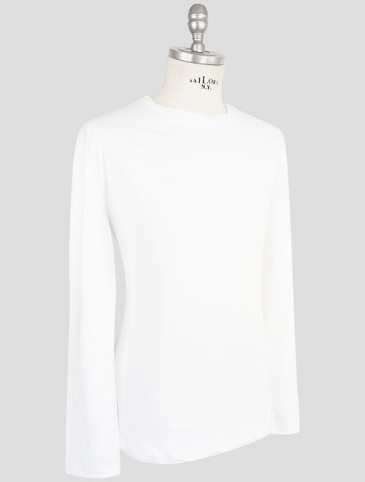 Kiton KNT White Cotton Crewneck Sweater - Handmade Italian Knitwear