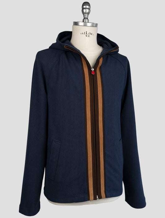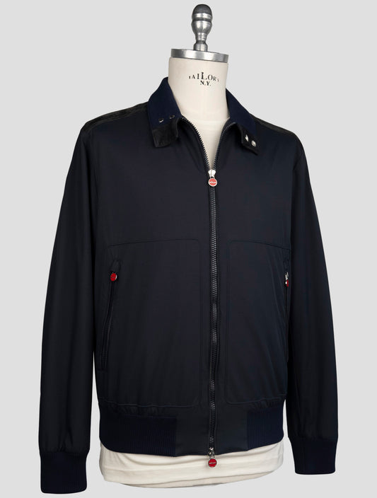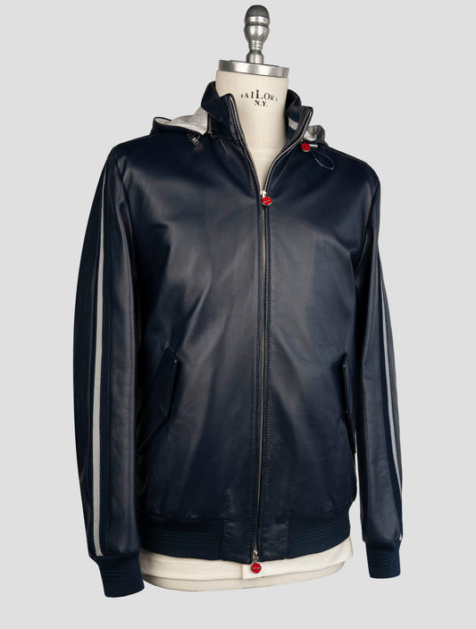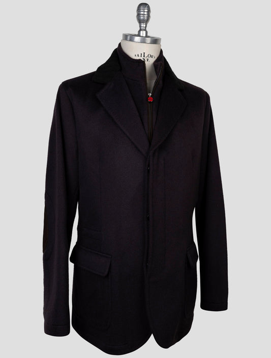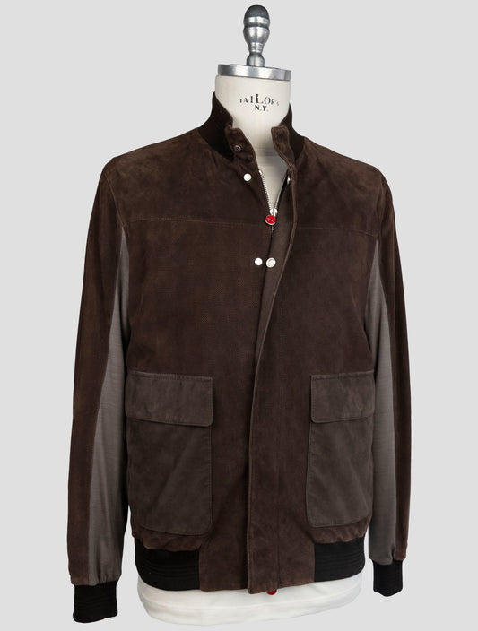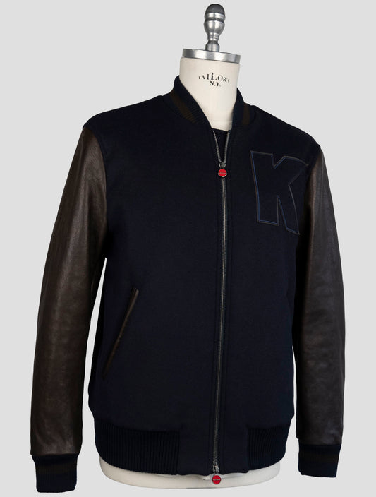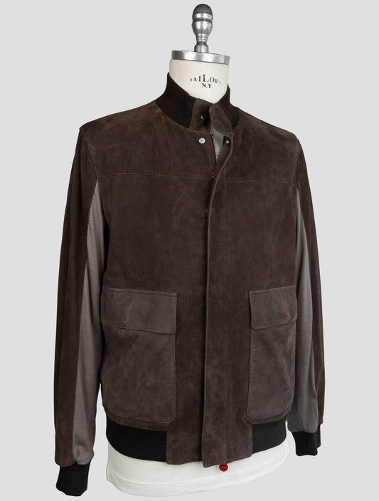 Kiton Brown Blue Leather Virgin Wool Pa Coat