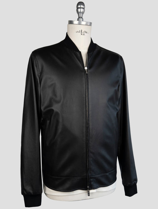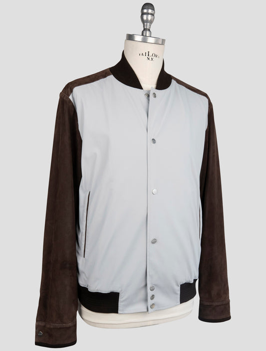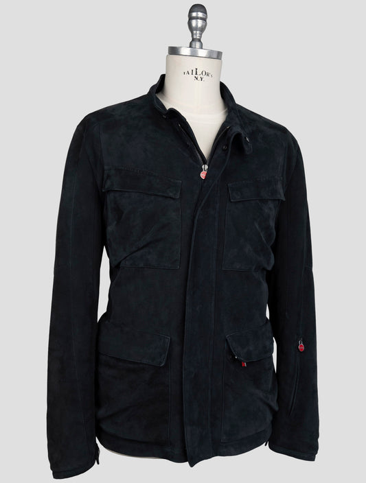 Kiton Luxury Black Gray Leather Cashmere Silk Wool Coat Full Zip