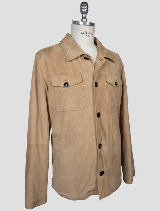 Kiton Men's Beige Leather Suede Coat - Italian Luxury Outerwear