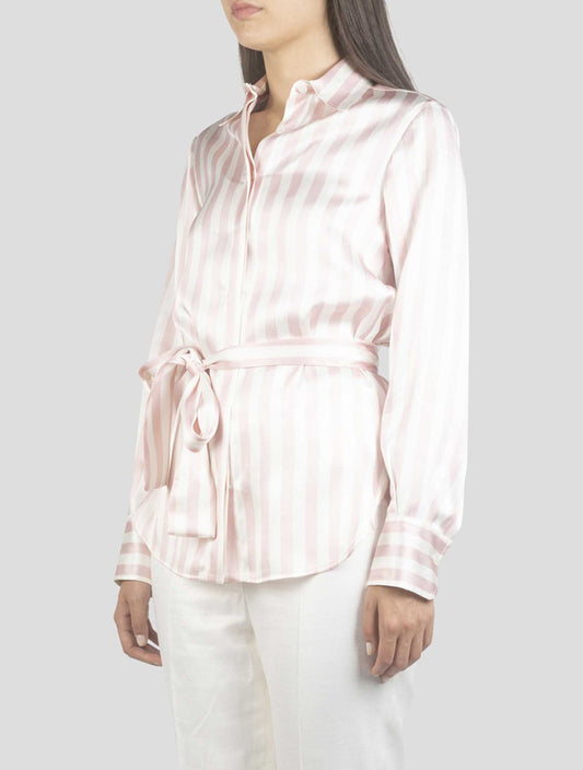 Kiton White Pink Striped Silk Shirt - 100% Handmade Italian