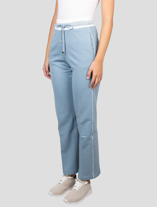 Kiton Light Blue Cotton Pants - Women's Tailored Fit Italian