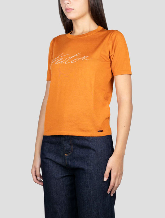 Kiton Orange Cashmere Silk T-Shirt - Women's Luxury Italian