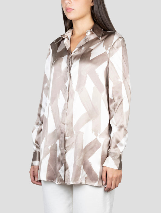 Kiton Pink Brown Silk Shirt - 100% Pure Silk Women's Blouse