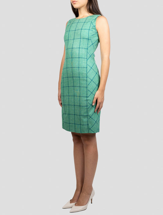 Kiton Handmade Linen Wool Dress Green Pied de Poule Pattern