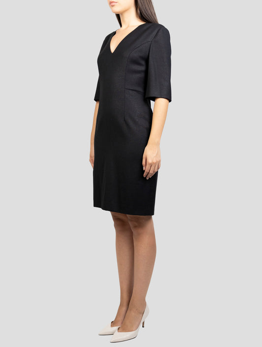 Kiton Black Virgin Wool Dress - Handmade Italian Striped