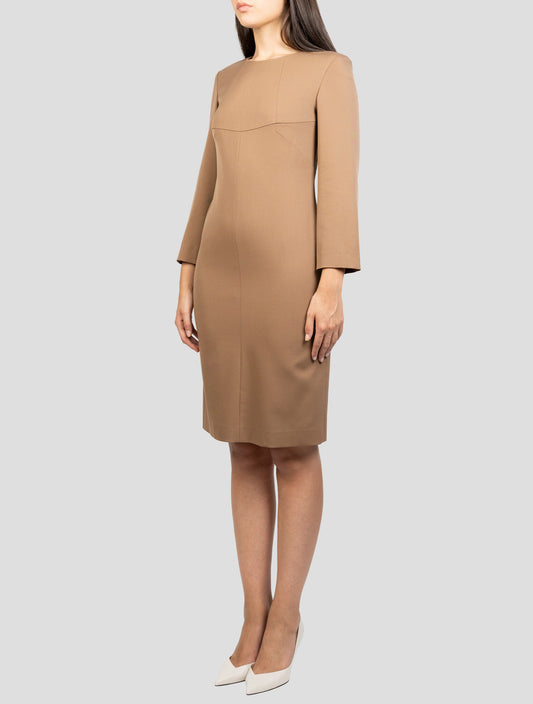 Kiton Beige Wool Silk PA Dress - Handmade Italian Designer Women