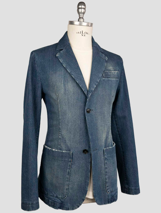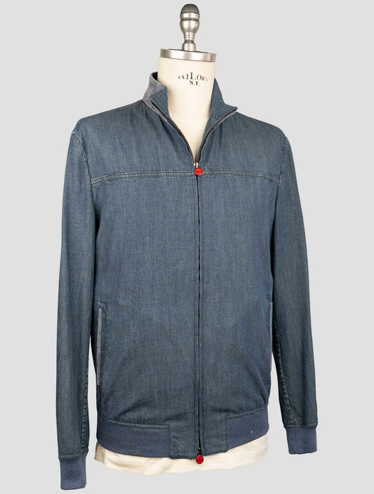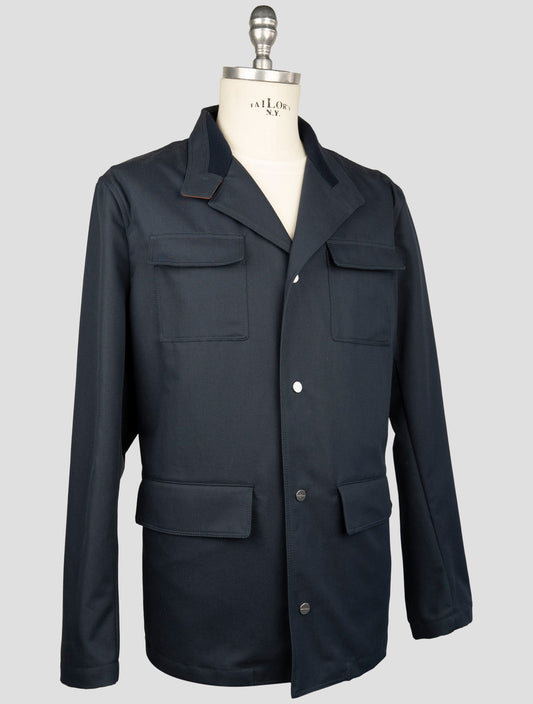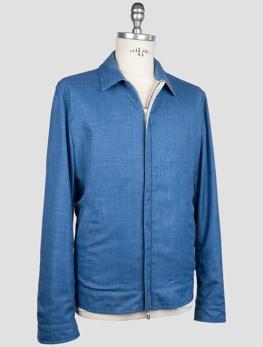 Kiton Blue Virgin Wool Silk Linen Pl Reverse Coat