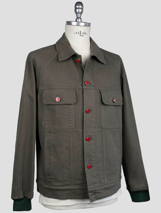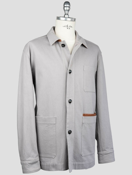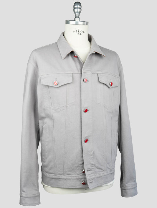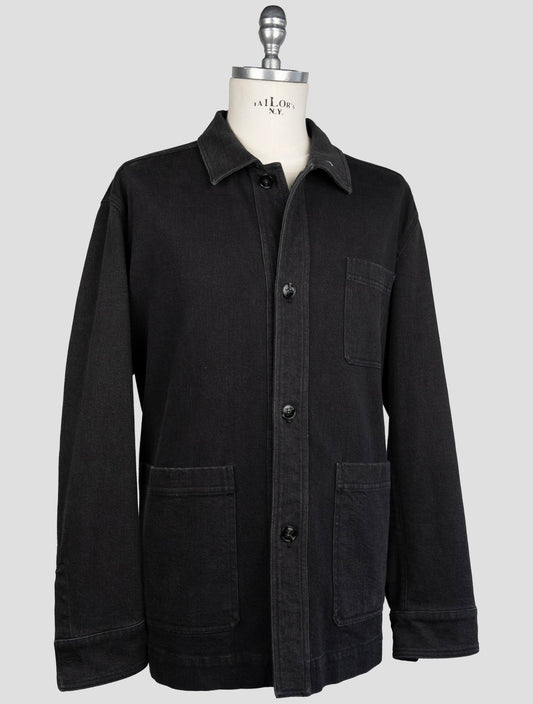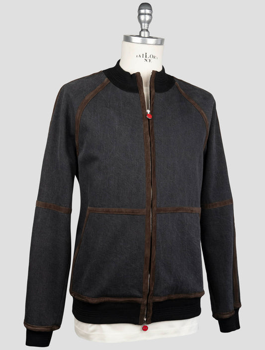 Kiton Black Cotton Denim Overcoat with Suede Leather Trim