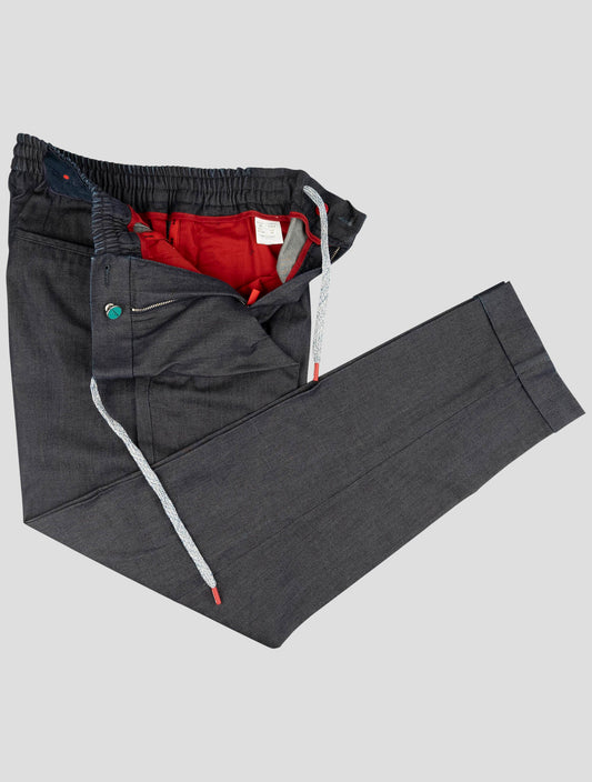 Kiton Men's Black Cotton Stretch Trousers Italian Tailored Pants