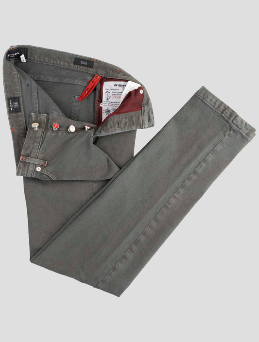 Kiton Gray Cotton Elastane Jeans - Handmade Italian Slim Fit