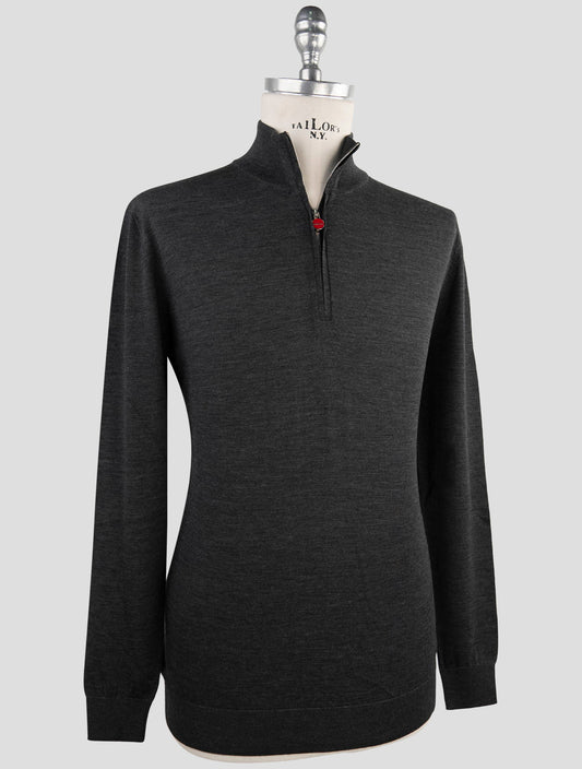 Kiton Premium Wool Half Zip Polo Sweater Dark Gray Italian