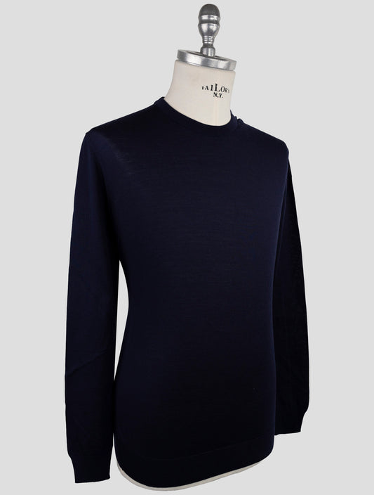 Kiton Navy Blue Pure Wool Crewneck Sweater - Italian Luxury