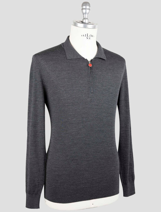 Kiton Premium Wool Half-Zip Polo Sweater Dark Gray Italian