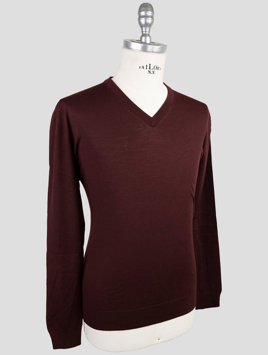 Kiton Premium Burgundy Wool V-Neck Sweater Blue Diamante Detail