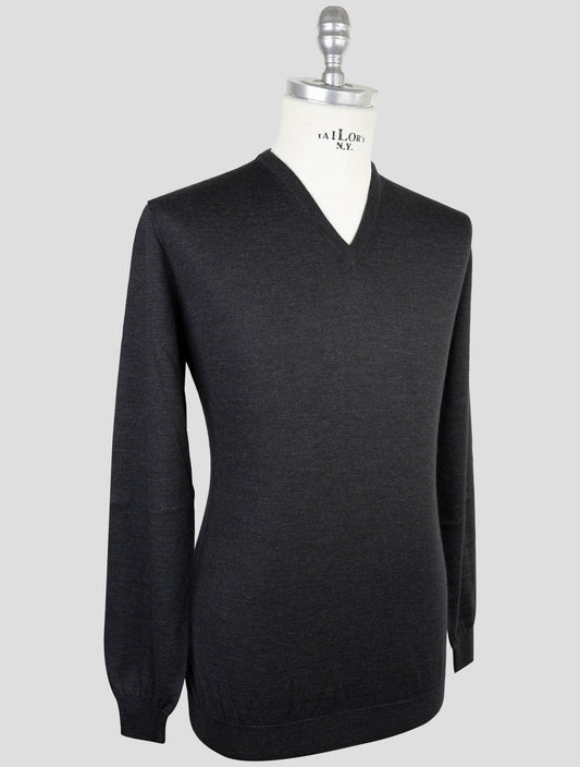 Kiton Premium Cashmere Silk V-Neck Sweater Dark Gray Italian
