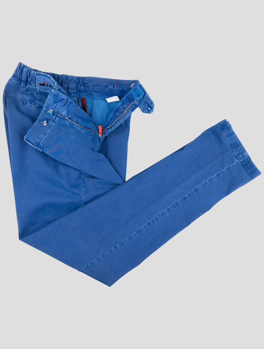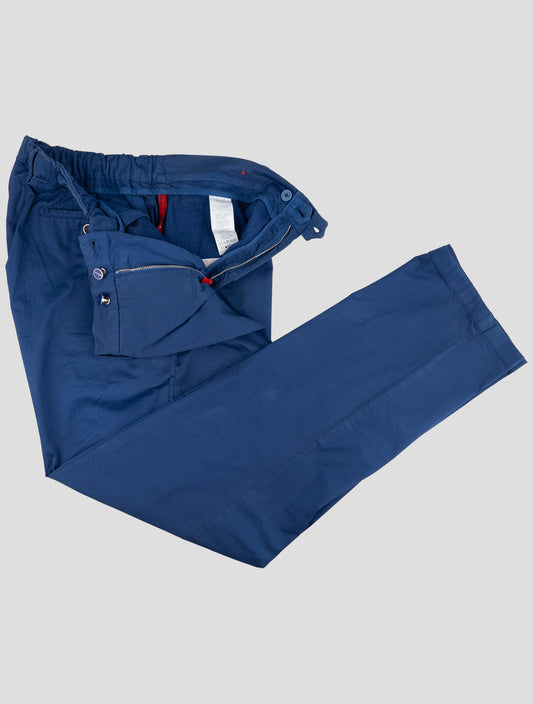 Kiton Blue Cotton Elastane Pants - Italian Tailored Trousers