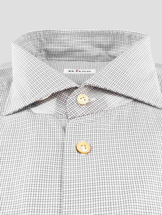 Kiton Gray Plaid Cotton Shirt - Handmade Italian Regular Fit