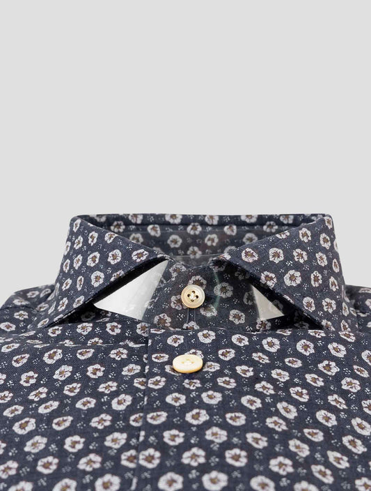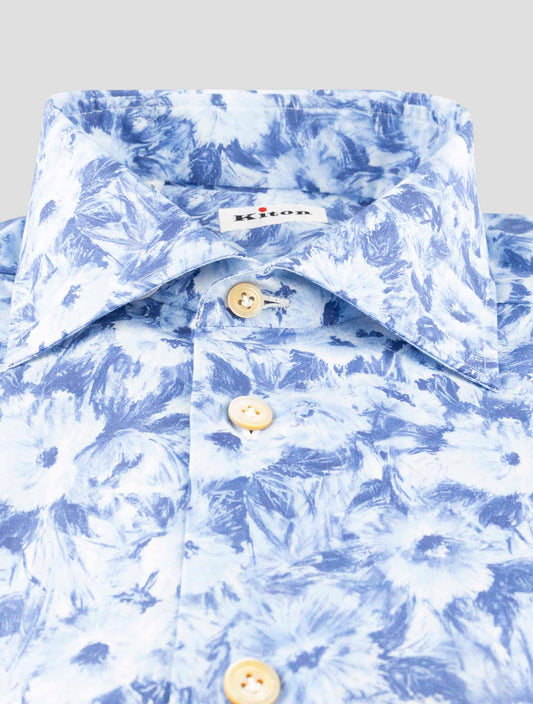 Kiton Premium Cotton Floral Shirt Blue Beige Italian Handmade
