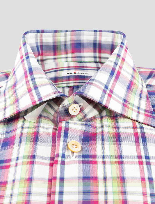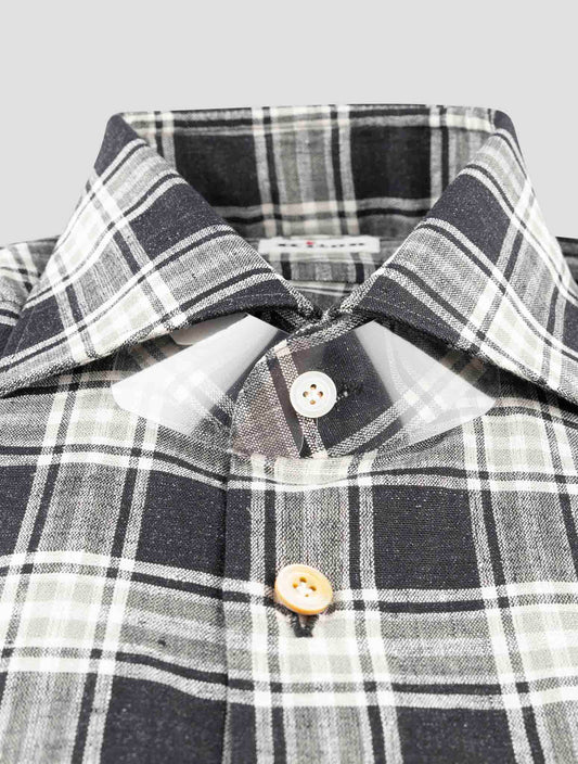 Kiton Linen Check Shirt - Handmade Italian Multicolor Plaid Regular Fit