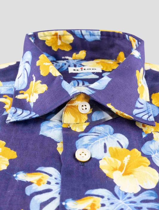 Kiton Premium Blue Linen Shirt - Italian Handmade Floral Summer