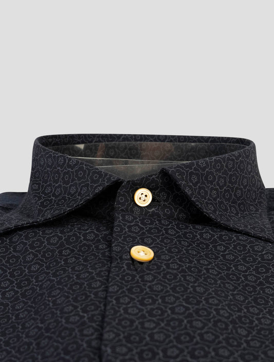 Kiton Premium Dark Gray Linen Floral Shirt - Italian Handmade