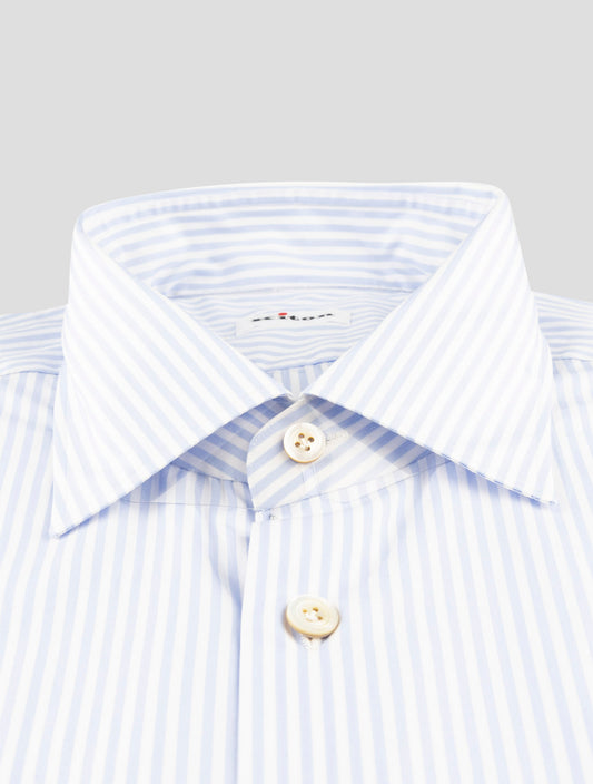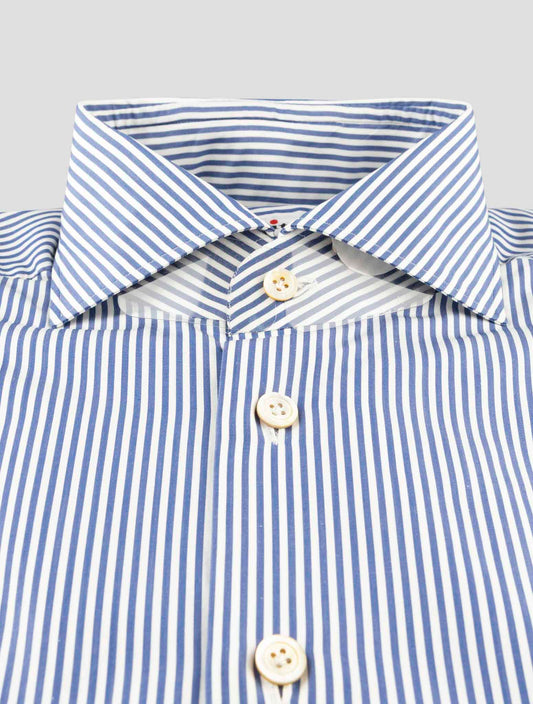 Kiton Handmade Blue White Striped Cotton Dress Shirt Regular Fit