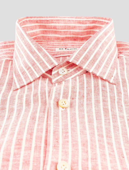 Kiton Handmade Red White Striped Linen Shirt - Italian Luxury
