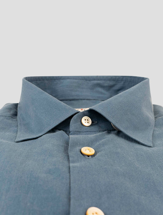 Kiton Premium Blue Cotton Dress Shirt - Italian Handmade Regular Fit