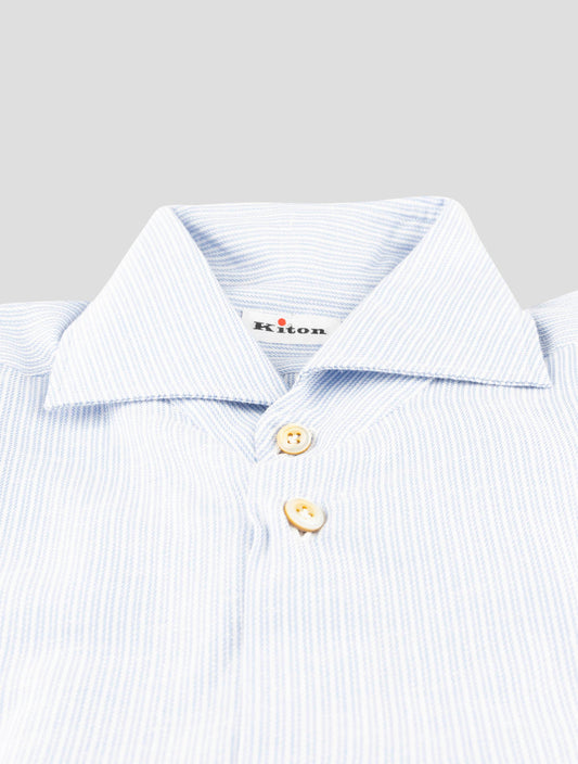 Kiton Handmade Premium Cotton Striped Dress Shirt Blue White
