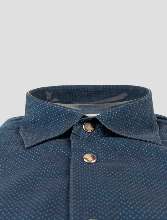 Kiton Blue Cotton Shirt - Handmade Italian Textured Regular Fit