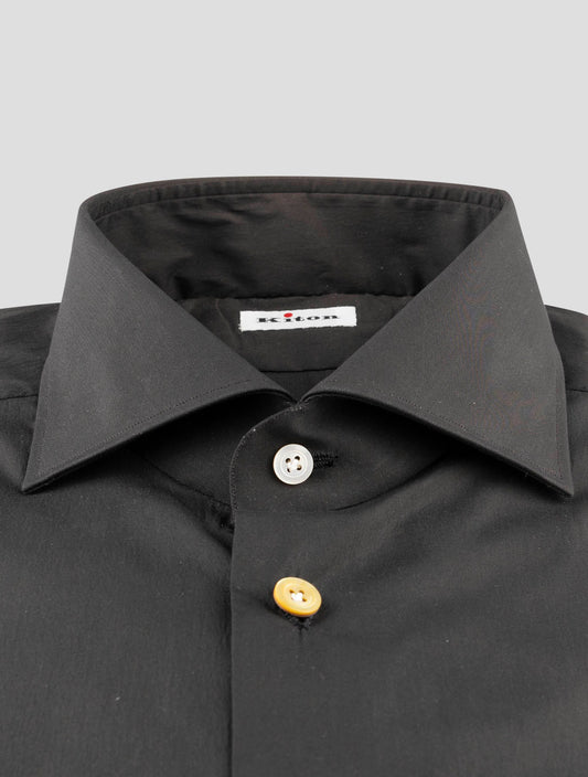 Kiton Premium Black Cotton Stretch Dress Shirt - Italian Handmade