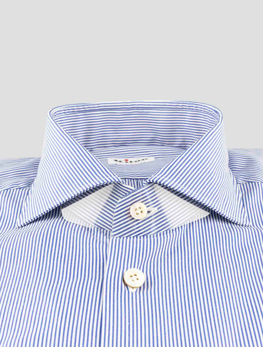 Kiton Premium Blue Striped Cotton Dress Shirt - Handmade Italy