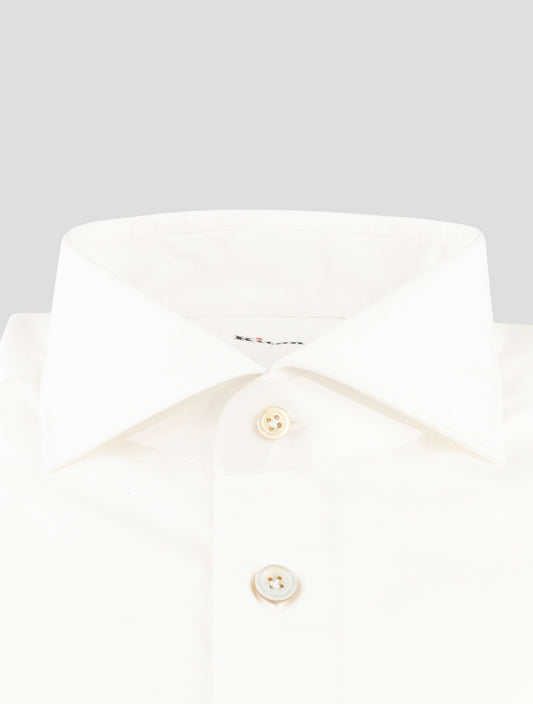 Kiton Premium White Cotton Dress Shirt - Handmade Italian Regular Fit
