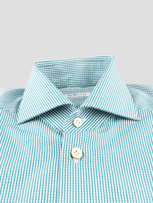 Kiton Handmade Cotton Dress Shirt Green Italian Premium Regular Fit