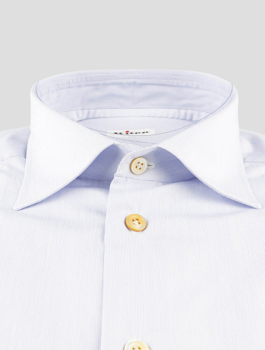 Kiton Handmade White Blue Striped Cotton Dress Shirt Men Italian