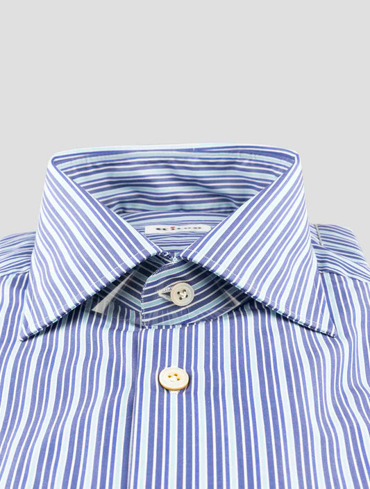 Kiton Premium Blue Striped Cotton Dress Shirt Italian Handmade