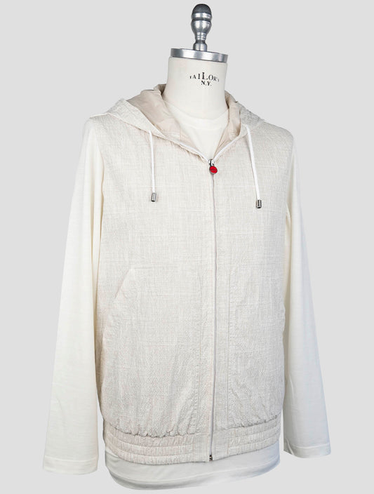 Kiton Beige Cotton Hooded Gilet Full Zip Vest Men's
