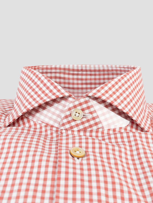 Kiton Red White Cotton Shirt - Geometric Pattern - Handmade