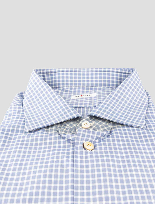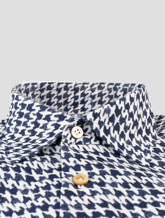 Kiton Blue White Pied de Poule Cotton Shirt - Handmade Italian