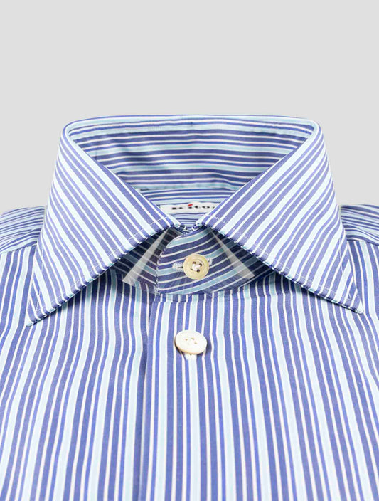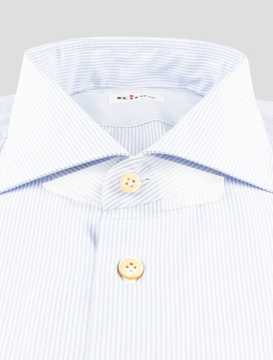 Kiton Light Blue Striped Cotton Shirt - Handmade Italian Regular Fit