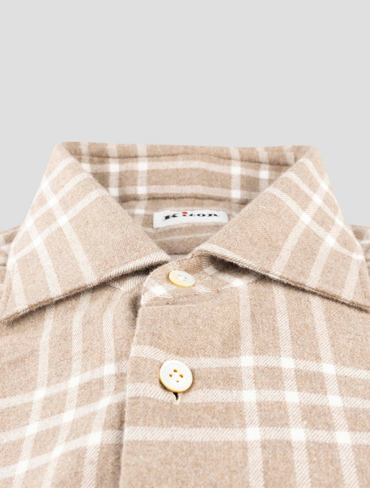 Kiton Brown Plaid Cotton Shirt - Handmade Italian Regular Fit
