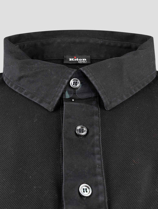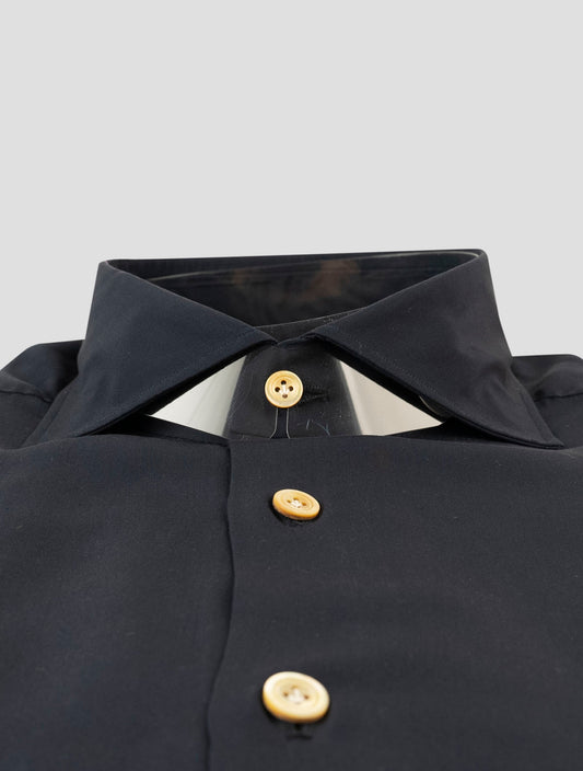 Kiton Italian Handmade Black Cotton Elastane Dress Shirt