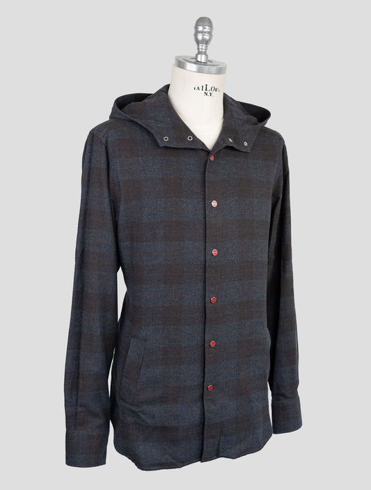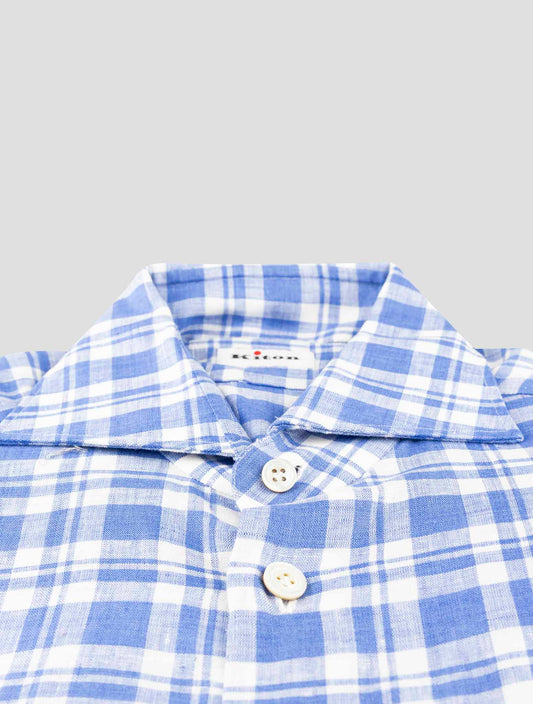 Kiton Blue Check Linen Shirt - Handmade Italian Regular Fit Men's