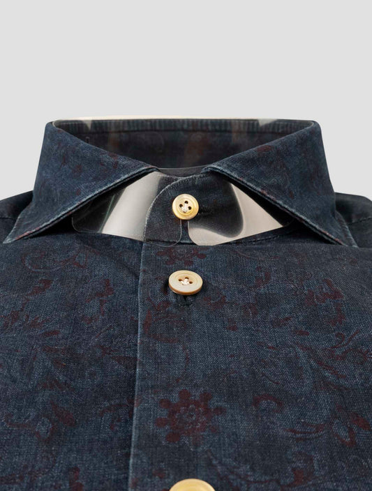 Kiton Blue Cotton Dress Shirt Handmade Italian Floral Pattern