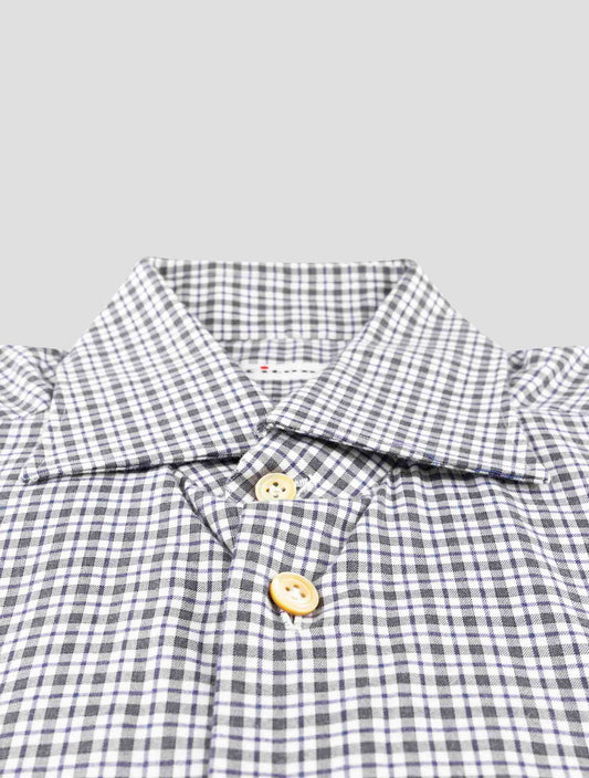 Kiton Handmade Gray Plaid Cotton Dress Shirt - Italian Crafted
