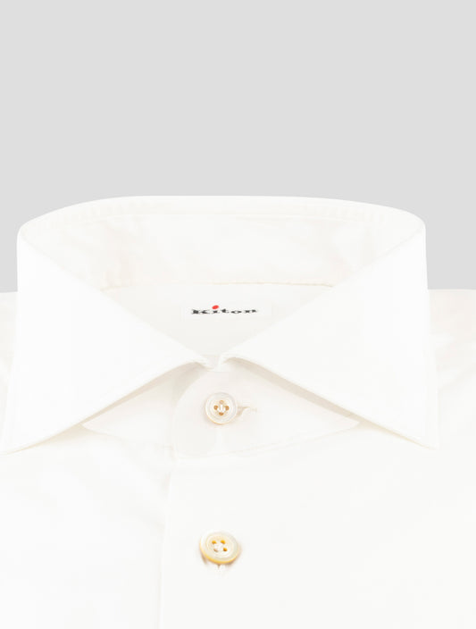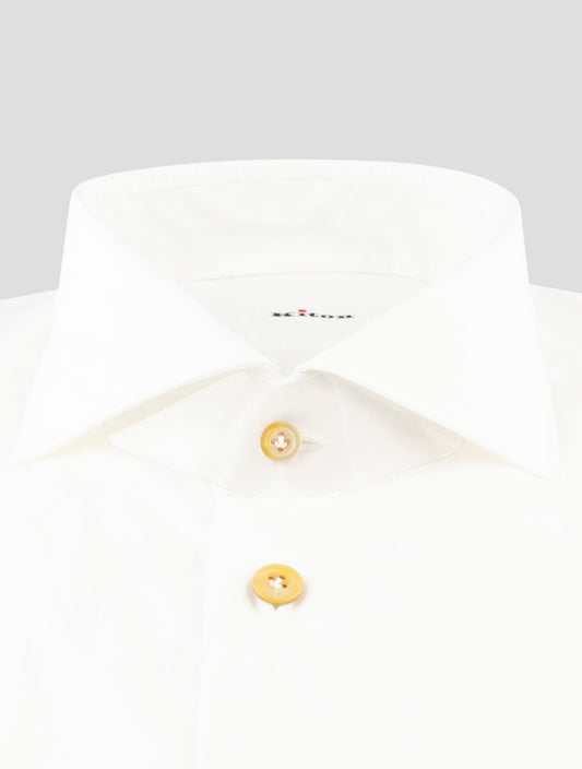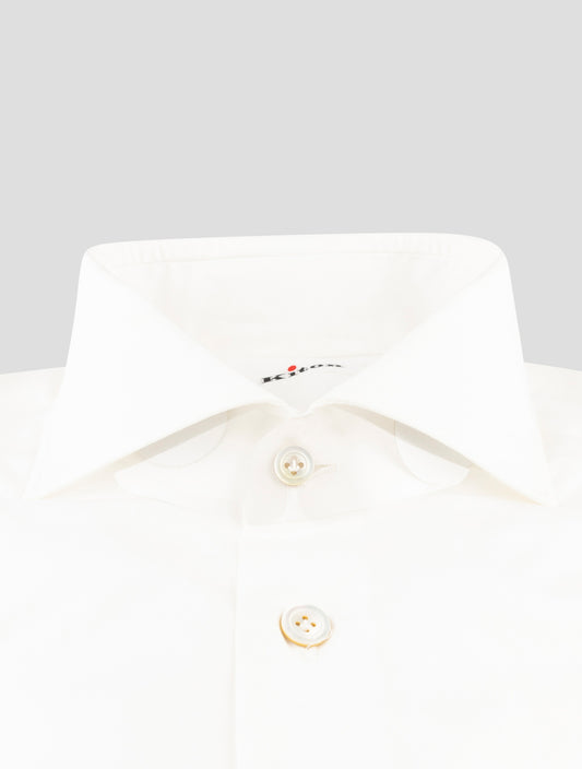 Kiton White Cotton Dress Shirt - Handmade Italian Regular Fit