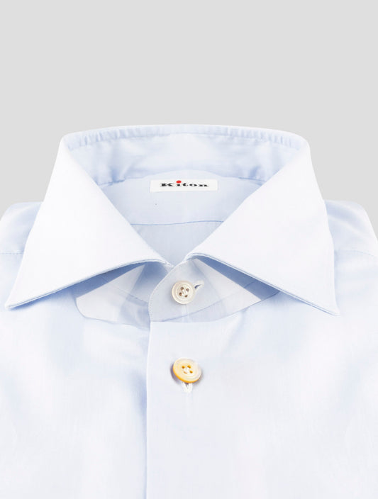 Kiton Light Blue Cotton Dress Shirt - Handmade Italian Regular Fit
