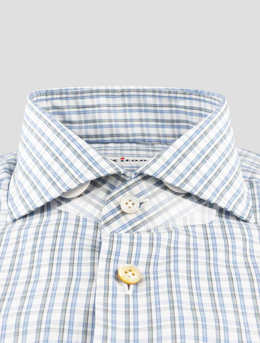 Kiton Premium Blue Cotton Dress Shirt - Italian Handmade Plaid