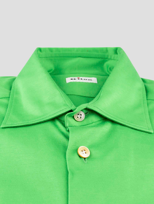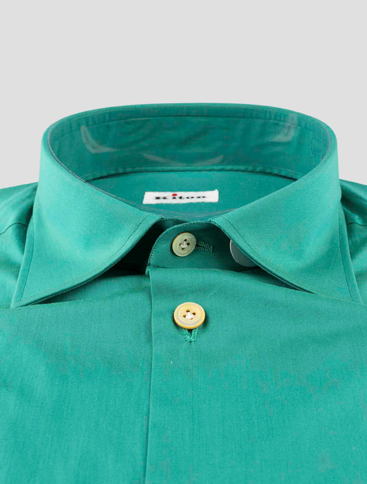 Kiton Premium Green Cotton Dress Shirt - Handmade Italian Regular Fit